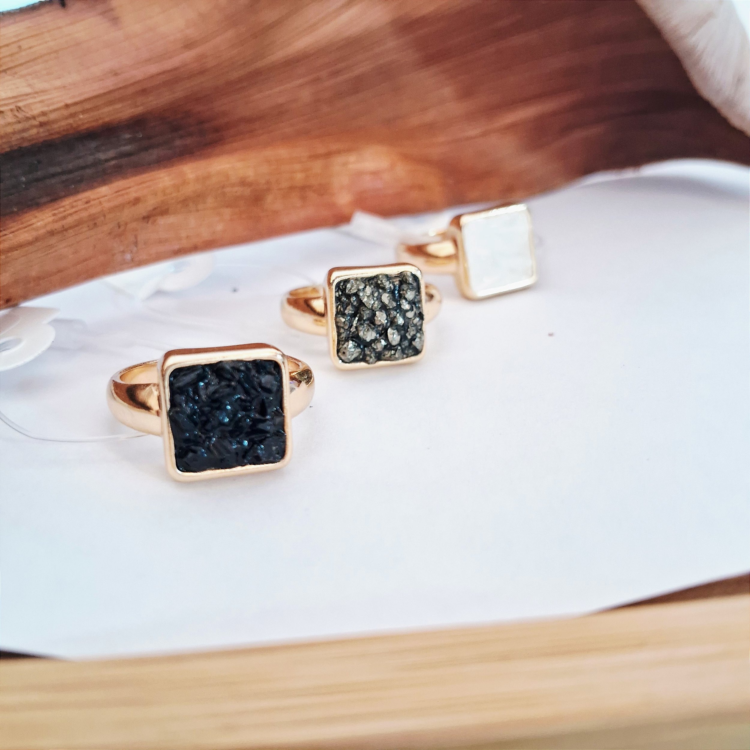 Anel Quadrado Fragmentos - Folheado a Ouro