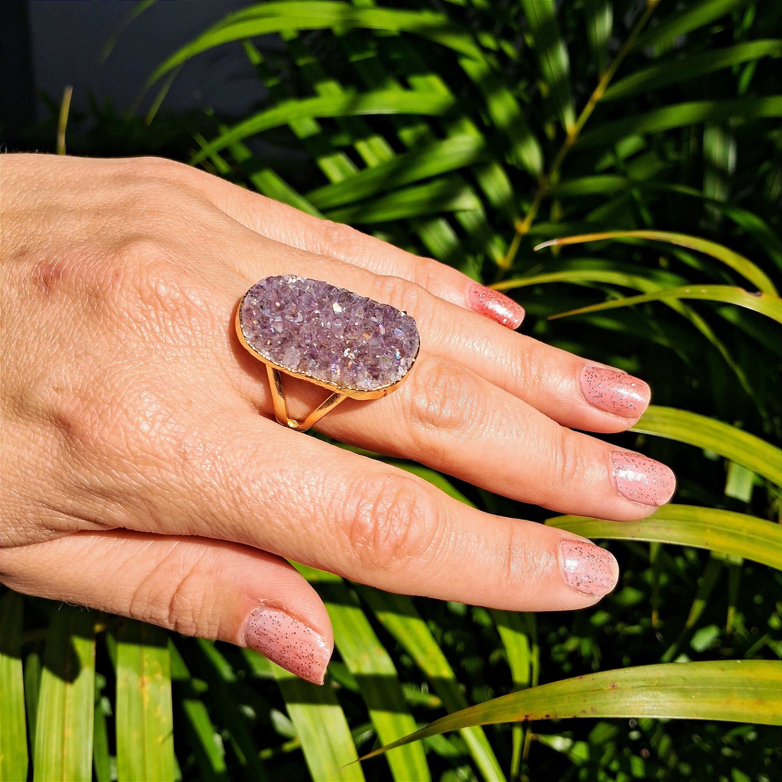 Anel Quartzo Titânio Tamanho 20 - Folheado a Ouro