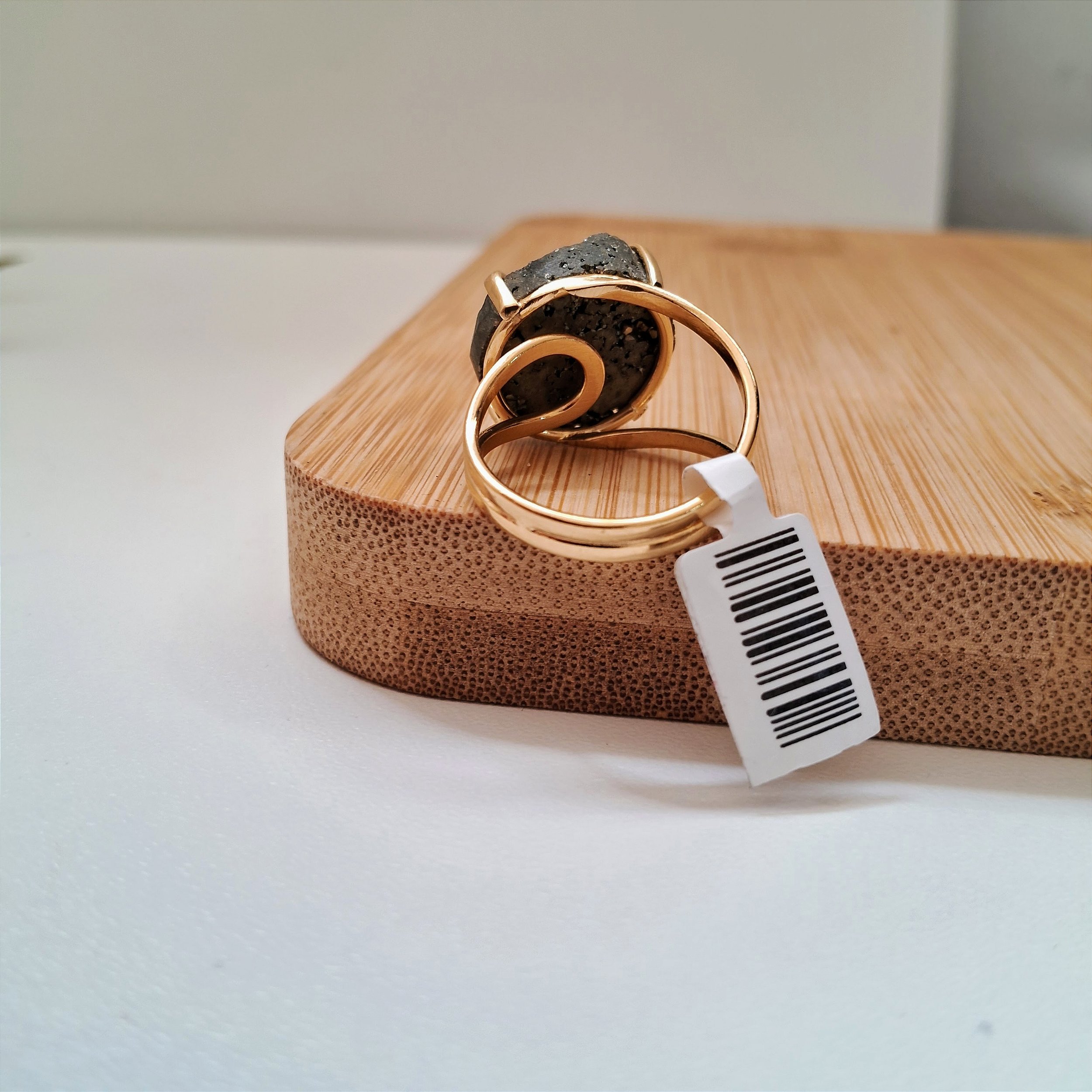 Anel Regulável Pirita Bruta - Folheado a Ouro