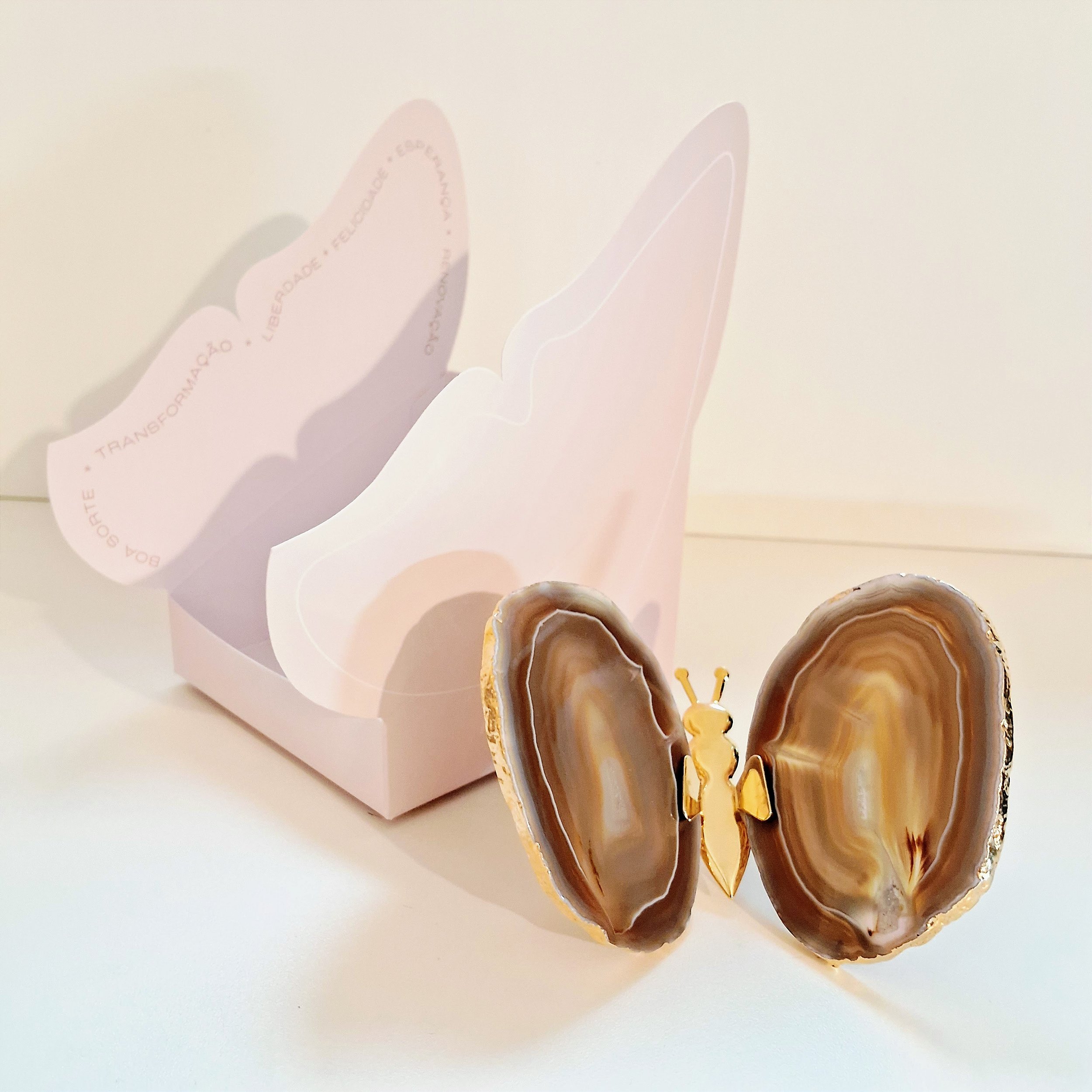 Borboleta Ágata Marrom - Borda Dourada
