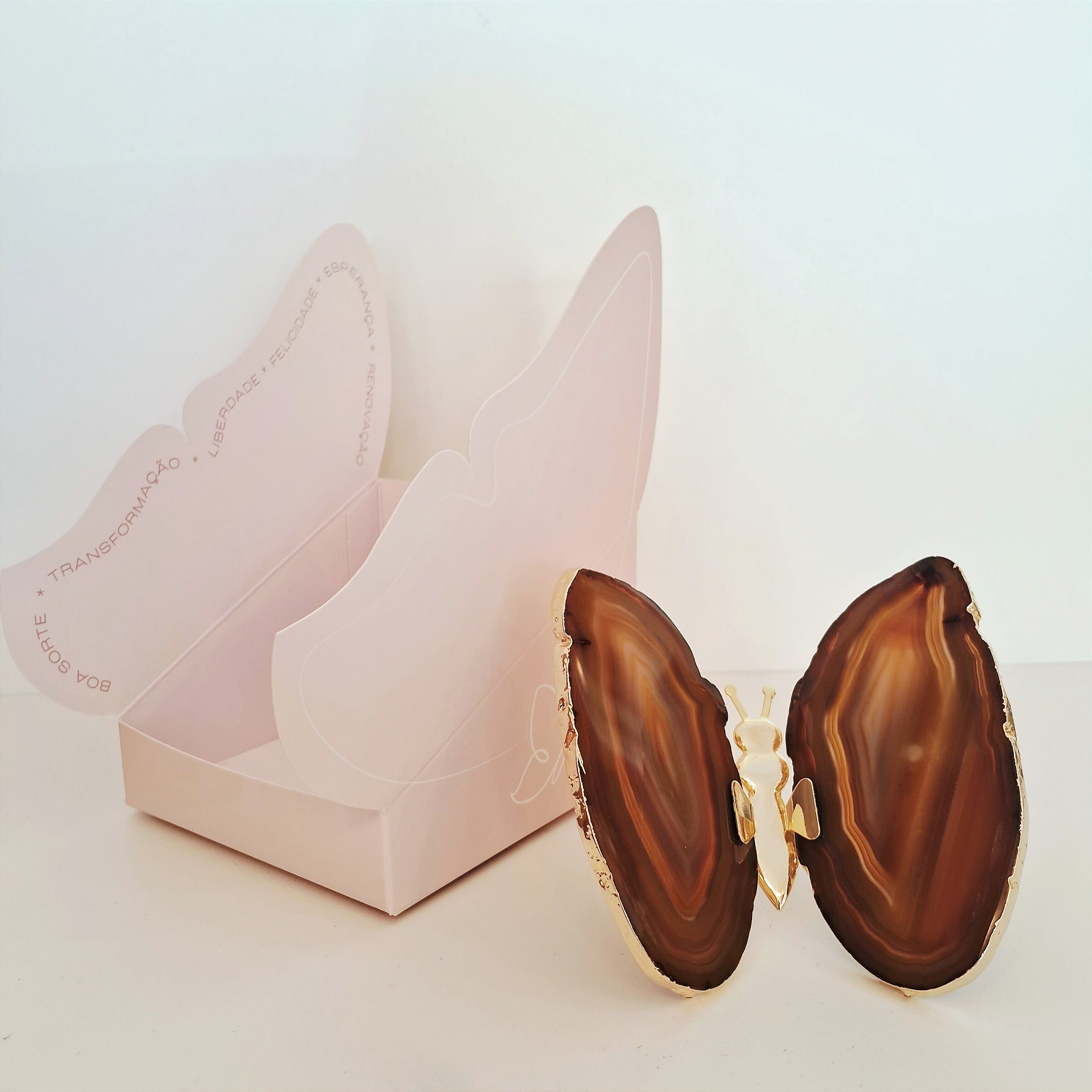Borboleta Ágata Marrom - Borda Dourada - Coleção Asas
