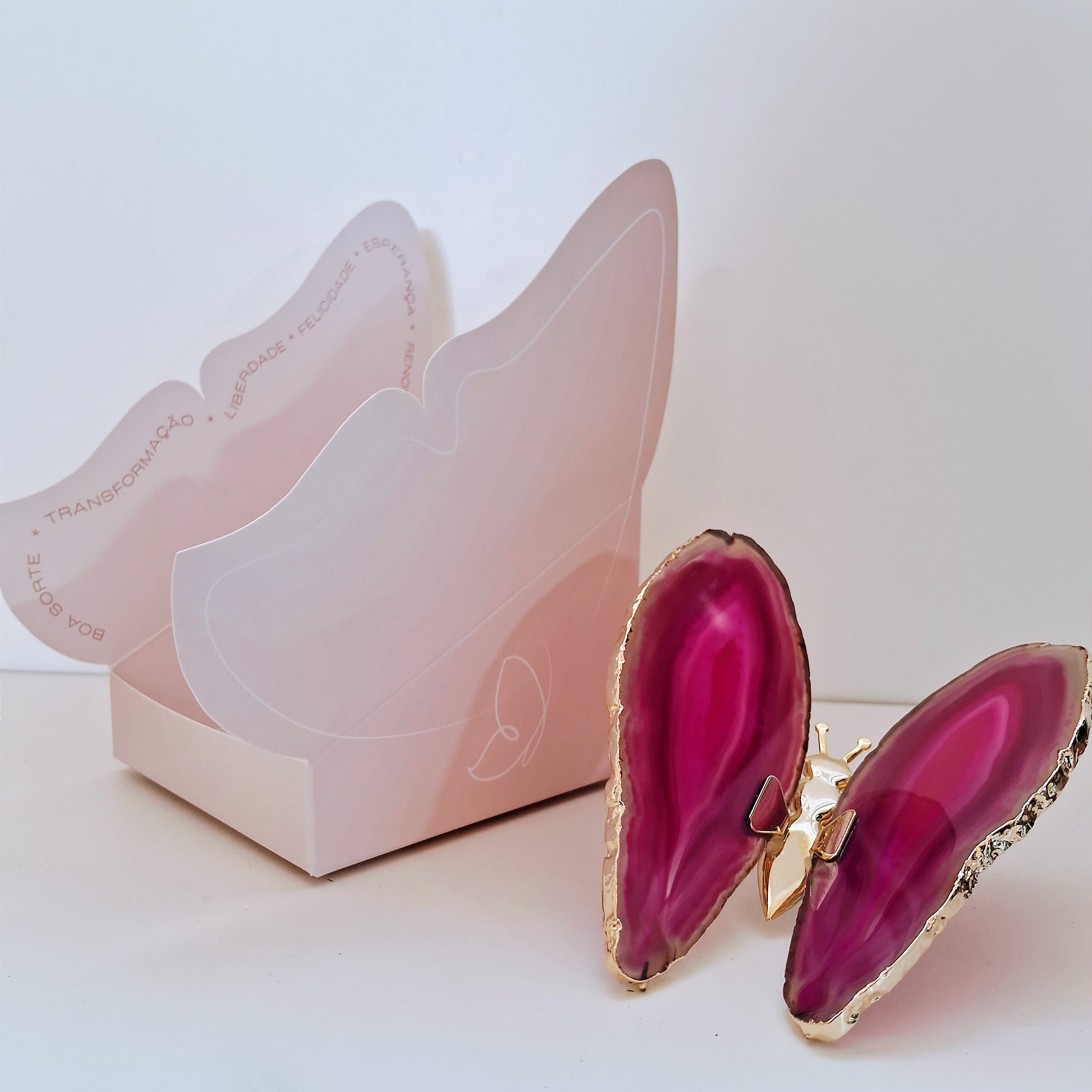 Borboleta Ágata Pink - Borda Dourada - Coleção Asas
