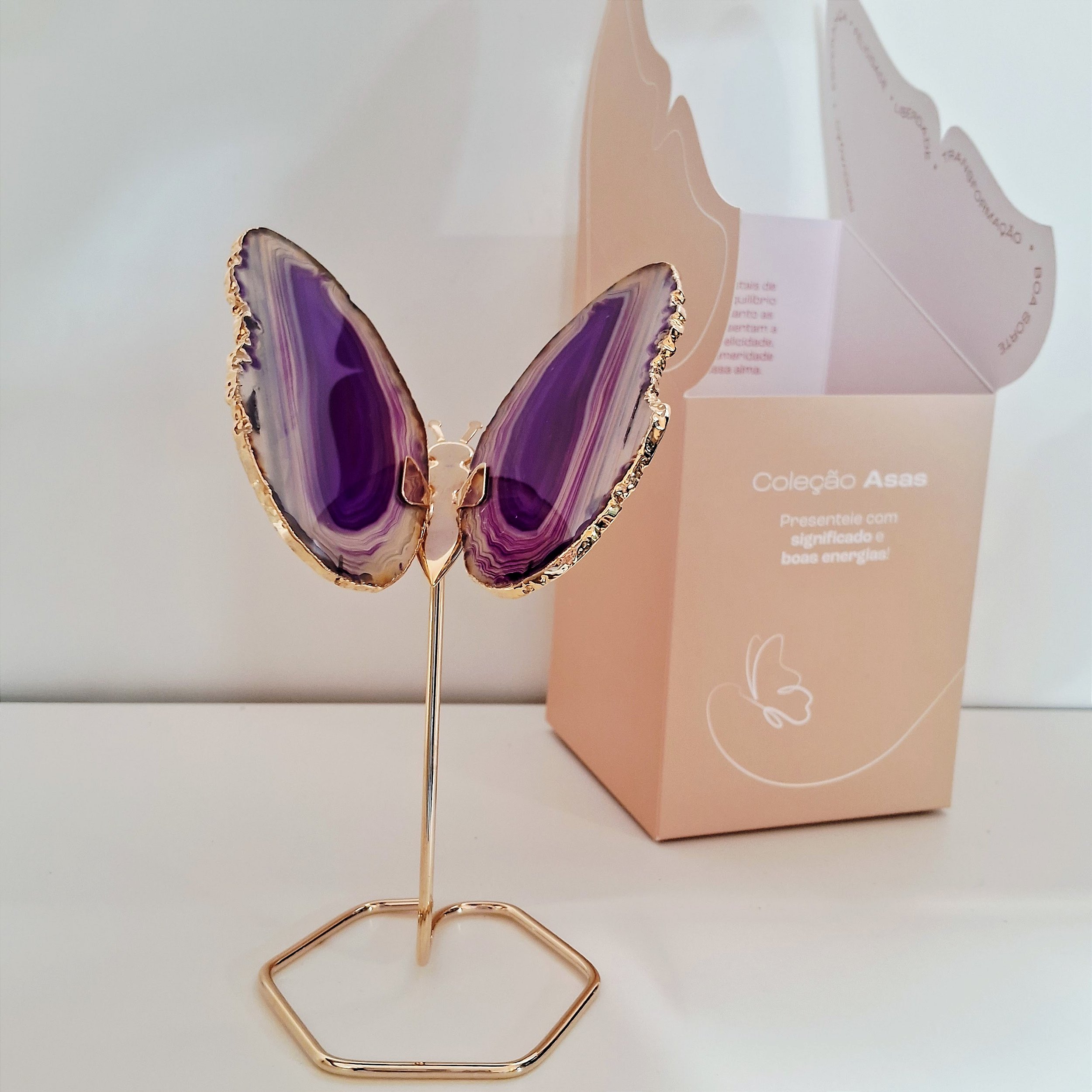 Borboleta Ágata Roxa - Borda Dourada - Base de Ferro