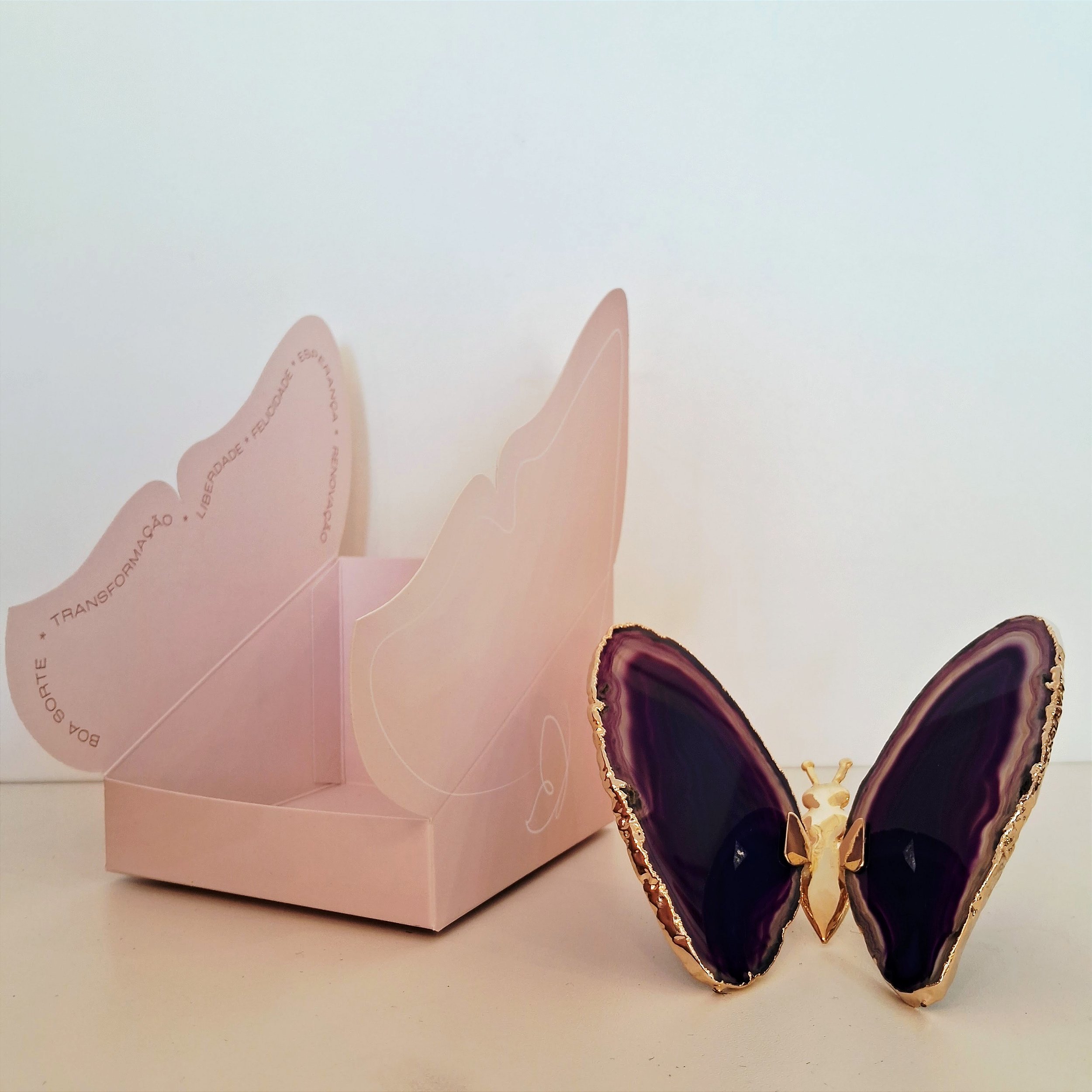Borboleta Ágata Roxa - Borda Dourada - Coleção Asas