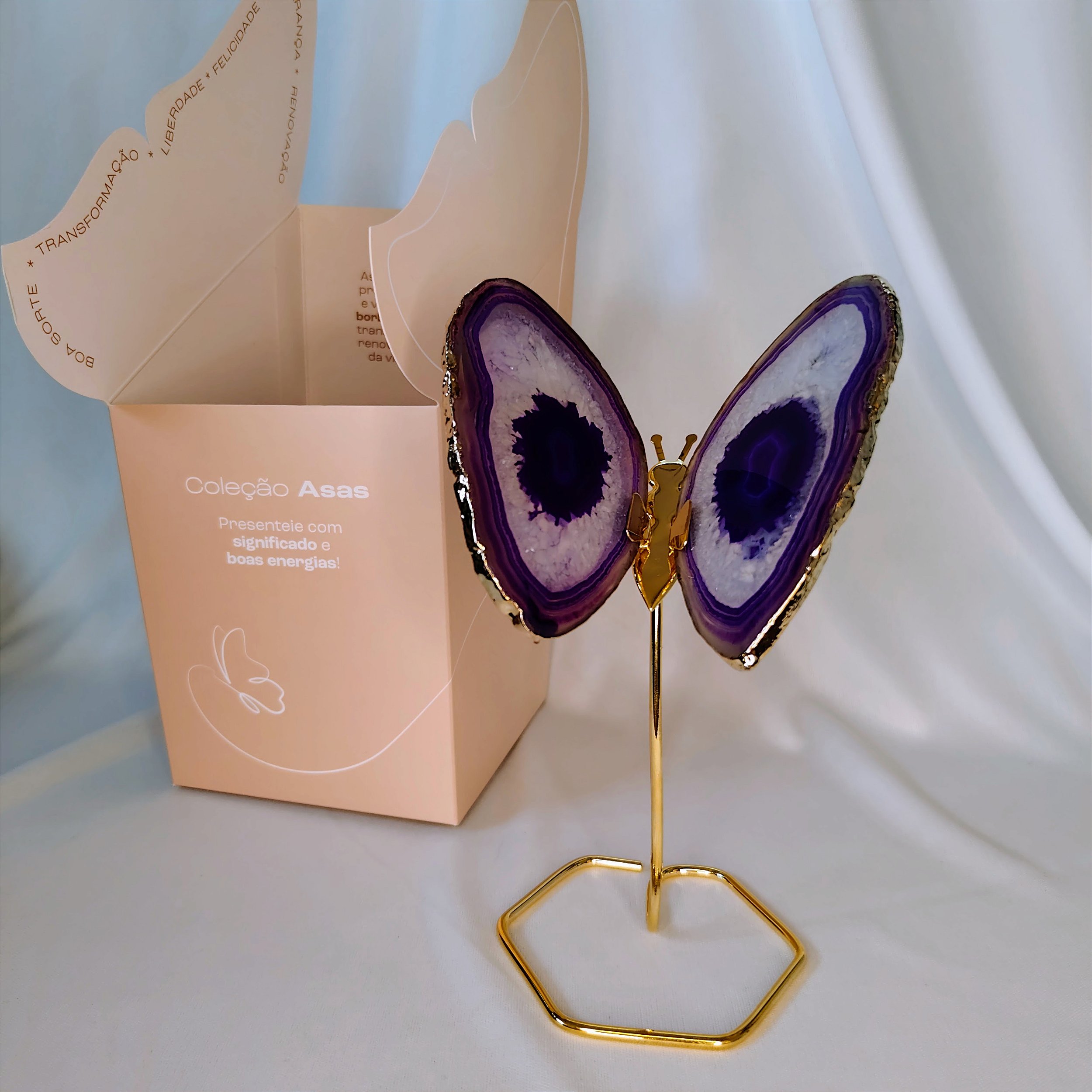 Borboleta Ágata Roxa - Borda Dourada - Base de Ferro