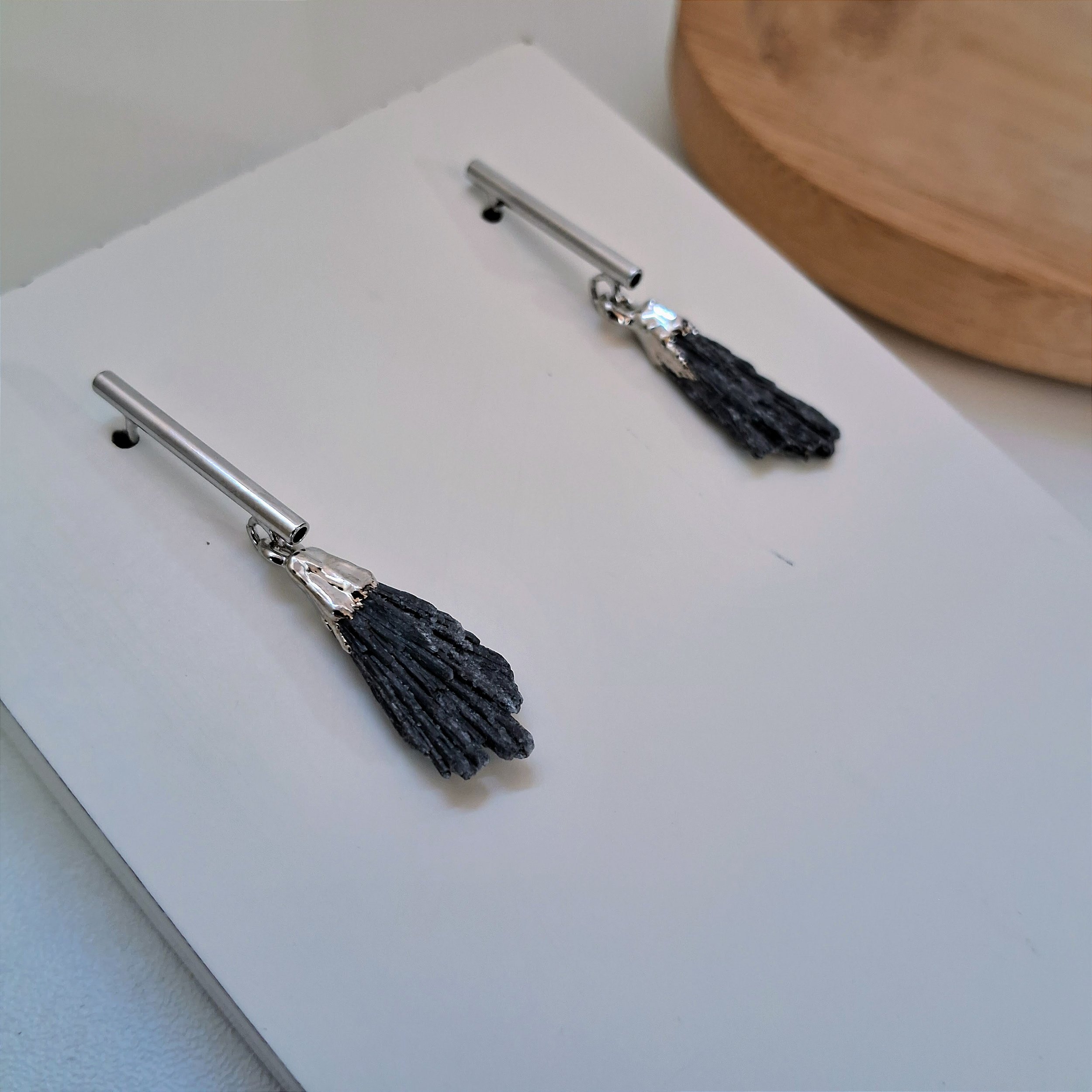 Cianita Negra – é excelente para sintonização e meditação. Dissipa a confusão e os bloqueios, a ilusão, a raiva, a frustração e o estresse. Aterra o corpo e alinha os chakras. É uma excelente pedra para limpeza da aura e da psique, remove rapidamente a negatividade dos corpos sutis e alinha os chakras.