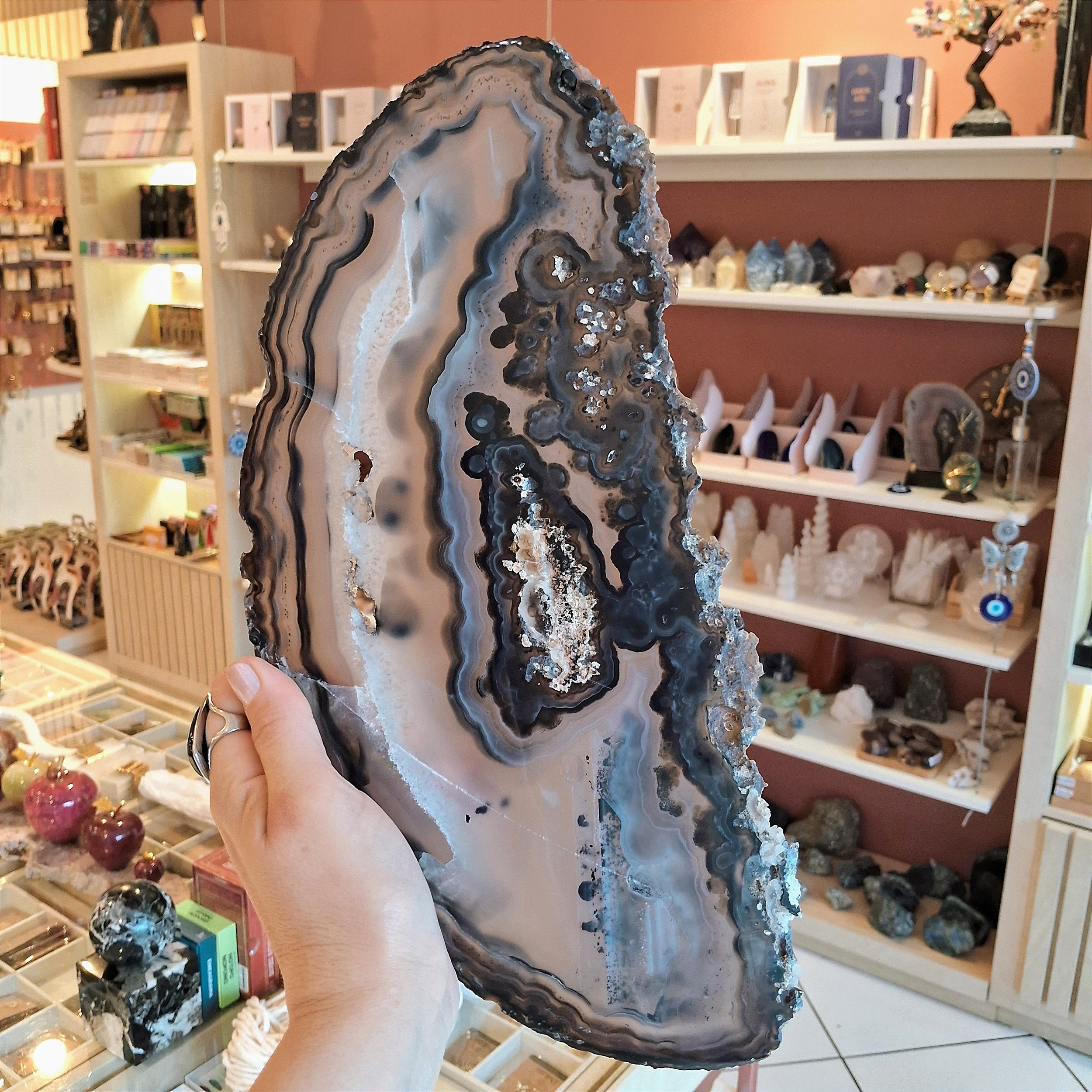 Ágata – As ágatas são pedras que propiciam o equilíbrio mental,físico e intelectual, melhora a percepção, concentração e capacidade analitica. Expurga a raiva reprimida, promovendo o amor e estimulando a coragem de recomeçar.