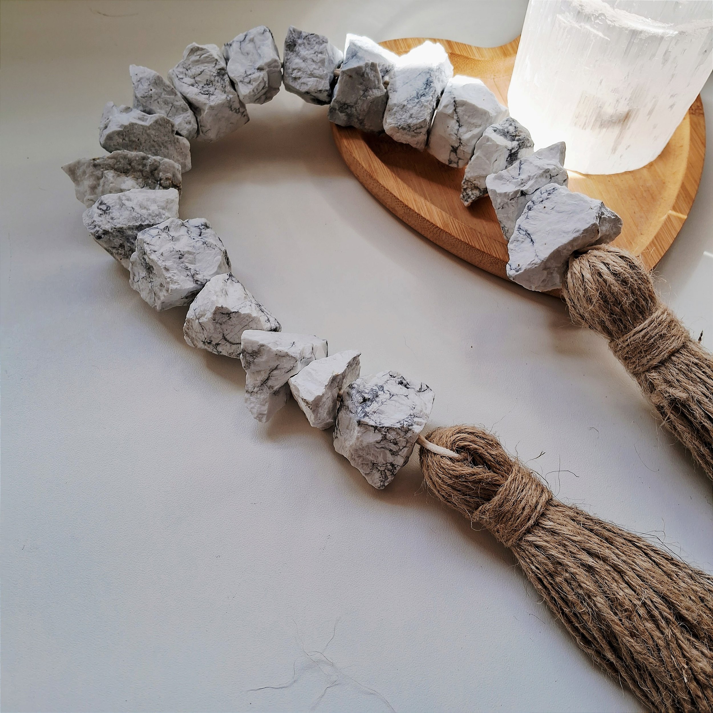 Howlita - tem um poderoso efeito calmante, sendo um excelente antídoto para a insônia. Ajuda a estabelecer nossas metas, tanto espirituais quanto materiais, bem como a alcançá-las. Ensina a paciência e ajuda a expurgar o ódio e a raiva incontrolável. Se guardada no bolso, absorve a raiva que sentimos ou que nos é dirigida. Possibilita uma comunicação serena e baseada no bom senso. Estimula a memória e a sede por conhecimento.