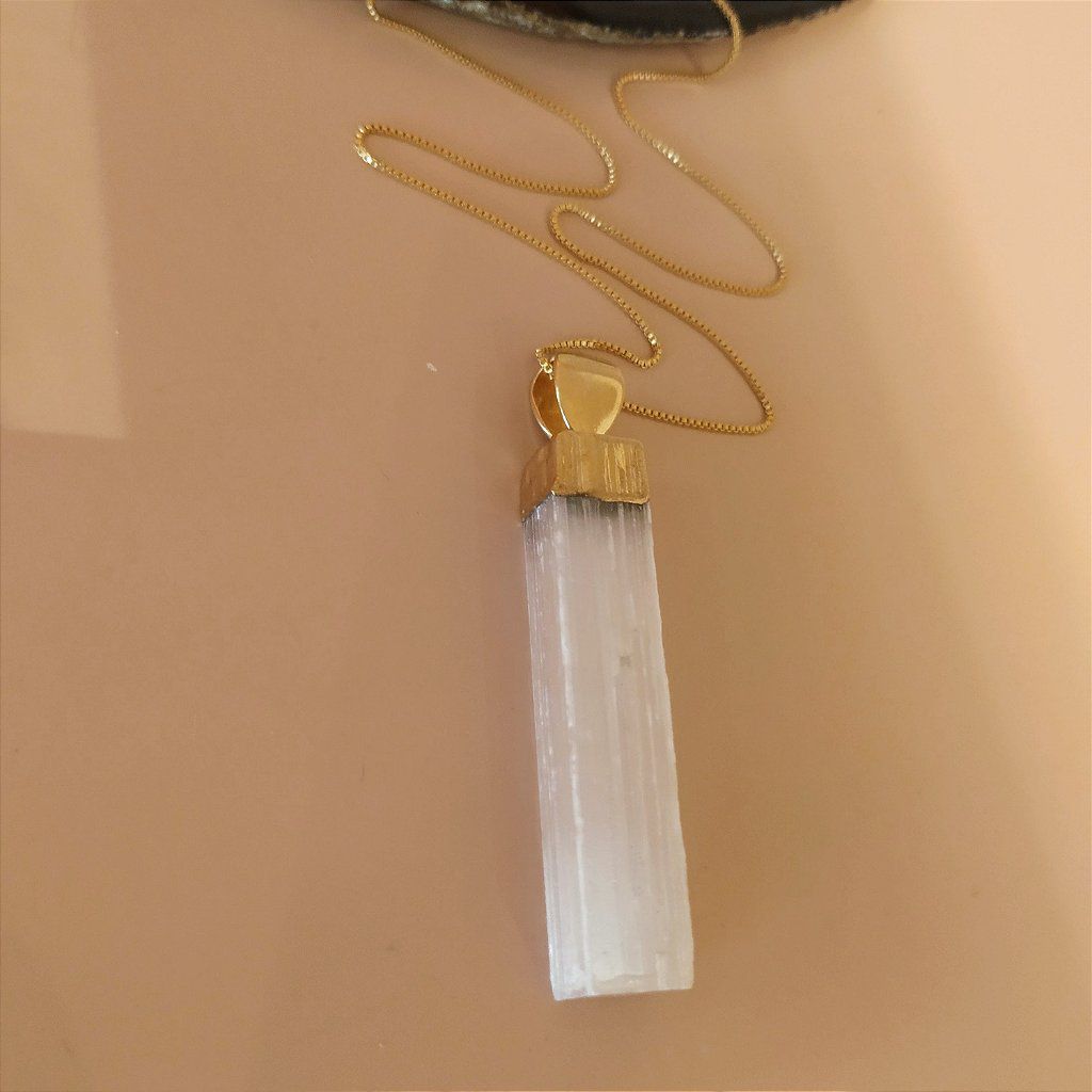Colar Selenita Branca Bruta - Folheada a Ouro