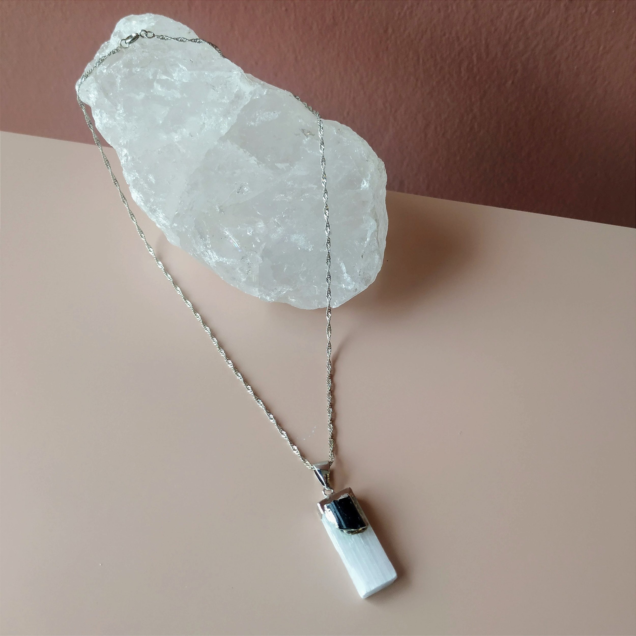 Selenita Branca – é um cristal sereno que instila a paz profunda. Forma uma grade protetora em torno da casa. Excelente cristal também, para mulheres que estão amamentando ou que têm filhos pequenos. Essa pedra preciosa aumenta a lucidez e melhora a flexibilidade. Sua vibração dissipa a confusão mental e nos ajuda a ter uma visão mais profunda da situação, trazendo um entendimento consciente do que ocorre no subconsciente. É uma maneira rápida de purificação e limpar seu campo energético. Ele fortalecerá e aumentará a energia de qualquer outro cristal com o qual entrar em contato.