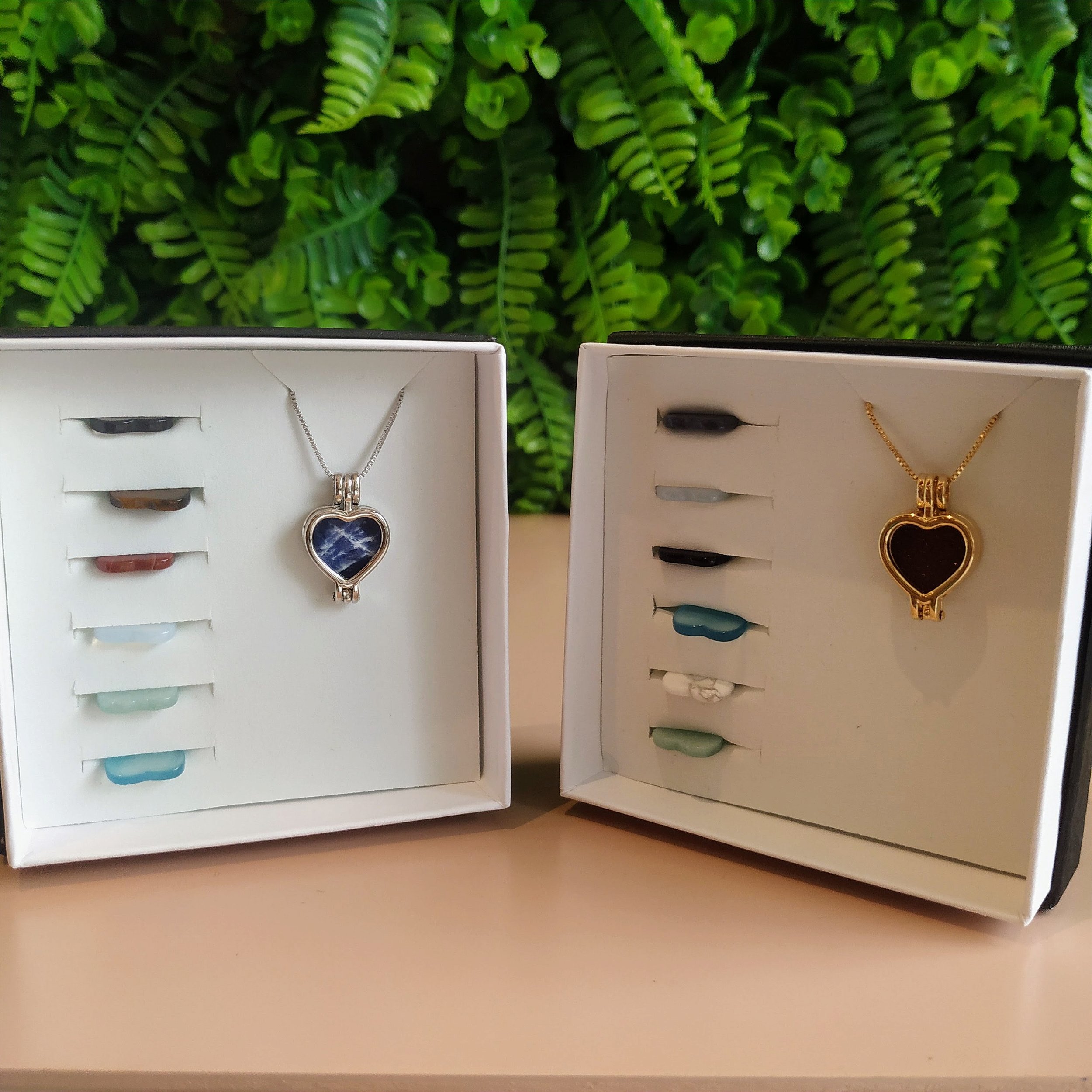 Os cristais que podem compor o seu combo são: ágata vermelha, ágata azul céu, ágata verde, ágata preta, amazonita bege, howlita branca, howlita amarela, howlita salmão, jaspe policromática, madrepérola, obsidiana fumê, olho de tigre, pedra da lua, pedra do sol, pedra estrela, quartzo verde, quartzo rosa e sodalita.