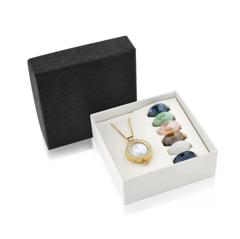 Os cristais que podem compor o seu combo são: ágata vermelha, ágata azul céu, ágata verde, ágata preta, amazonita bege, howlita branca, howlita amarela, howlita salmão, jaspe policromática, madrepérola, obsidiana fumê, olho de tigre, pedra da lua, pedra do sol, pedra estrela, quartzo verde, quartzo rosa e sodalita.