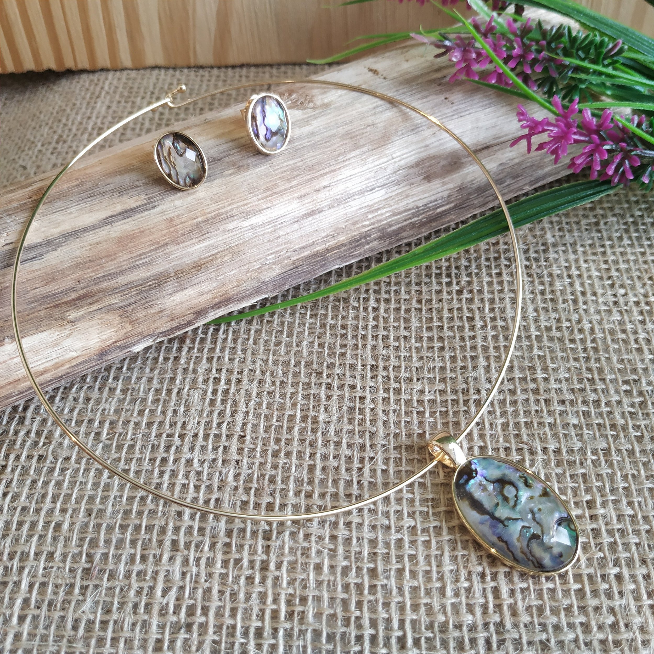 Conjunto Aro Fino e Brinco Abalone Facetado