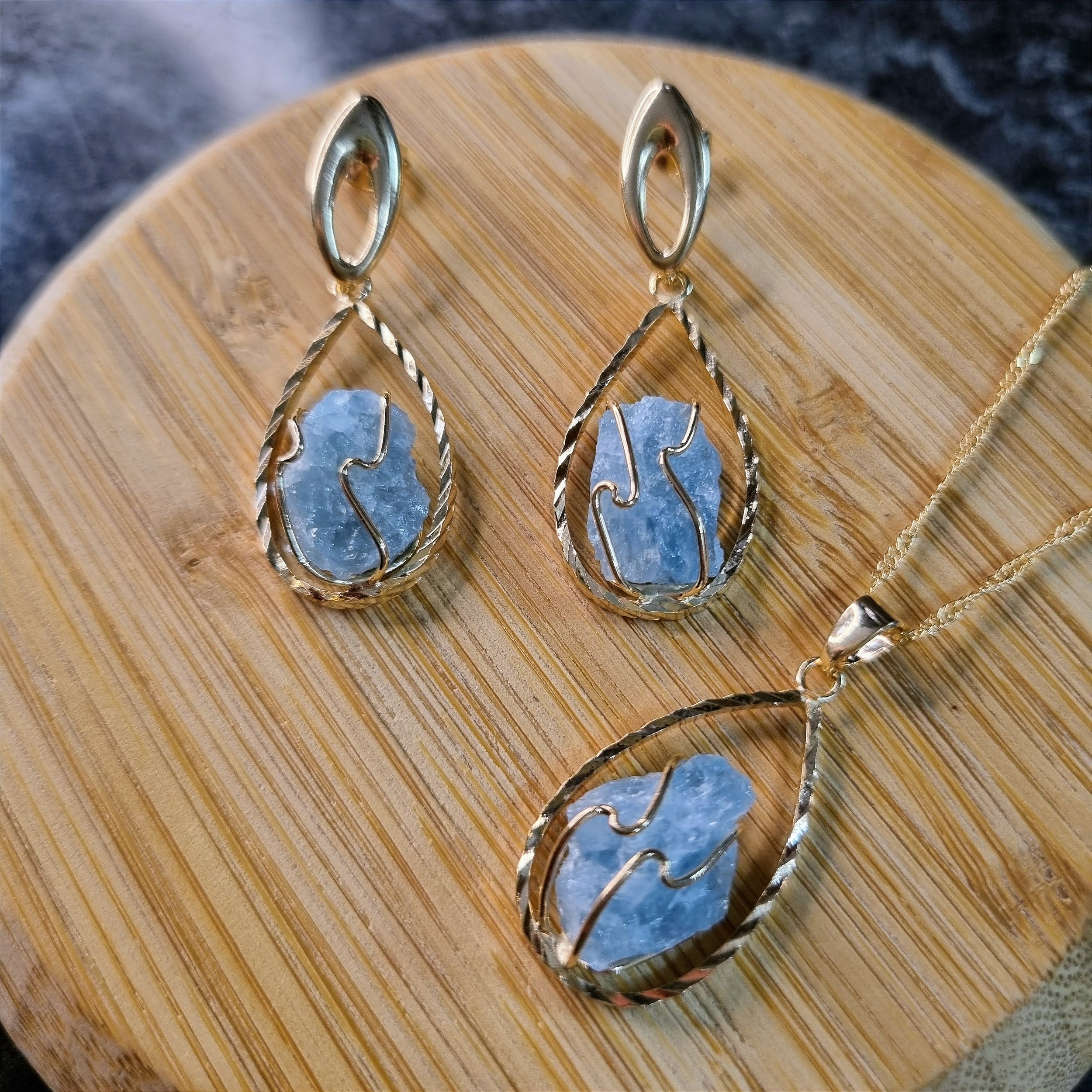 Conjunto Água Marinha Bruta - Folheado a Ouro