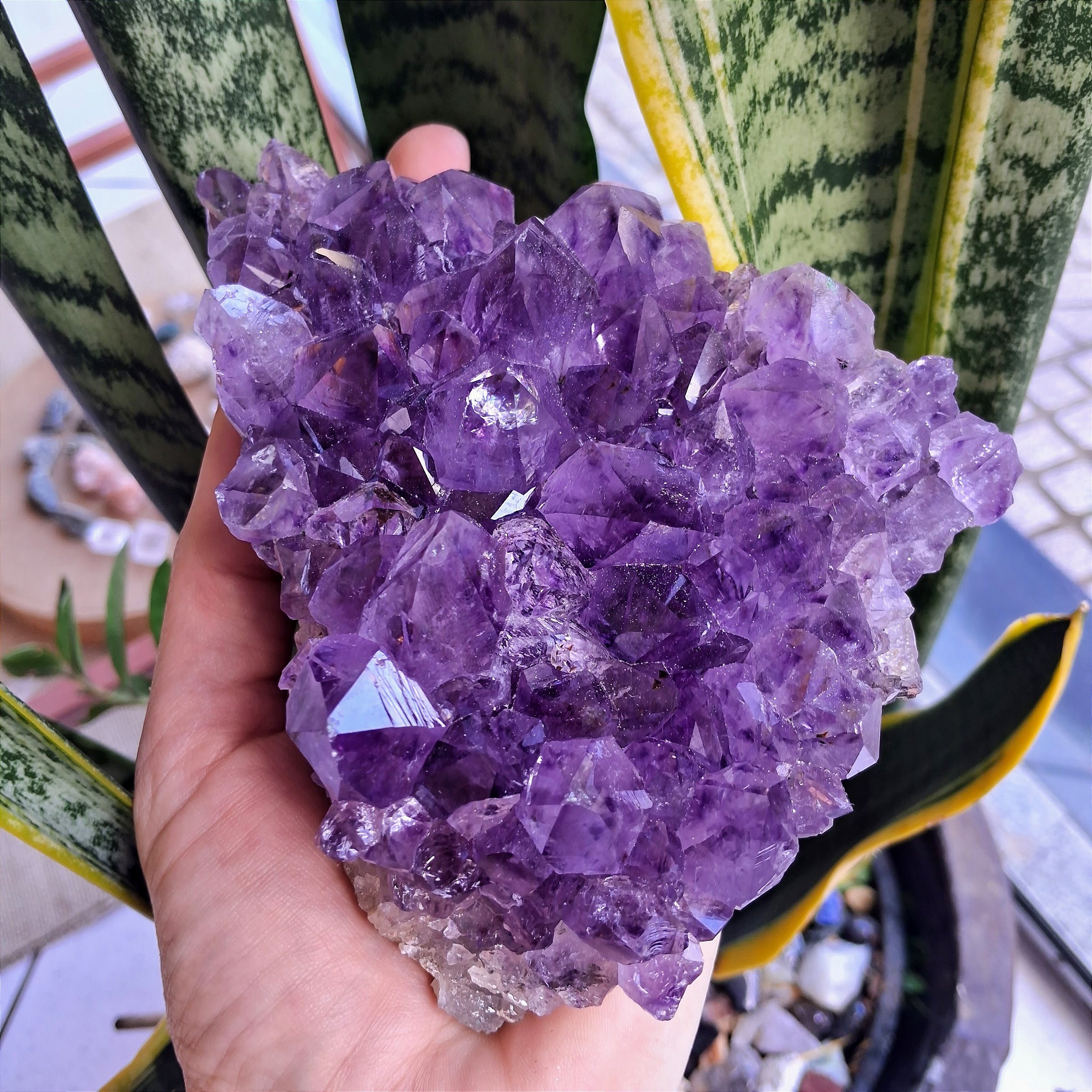 Ametista - é um cristal extremamente poderoso e protetor. É o cristal da elevação espiritual e é excelente para favorecer a meditação. Sendo um calmante natural, essa pedra preciosa facilita a tomada de decisões e promove o centramento emocional. Do ponto de vista mental, ela ajuda a nos sentirmos menos dispersos, mais focados e no controle das nossas faculdades mentais, favorecendo a assimilação de novas ideias. Dissipa raiva, medo, ódio e ansiedade.