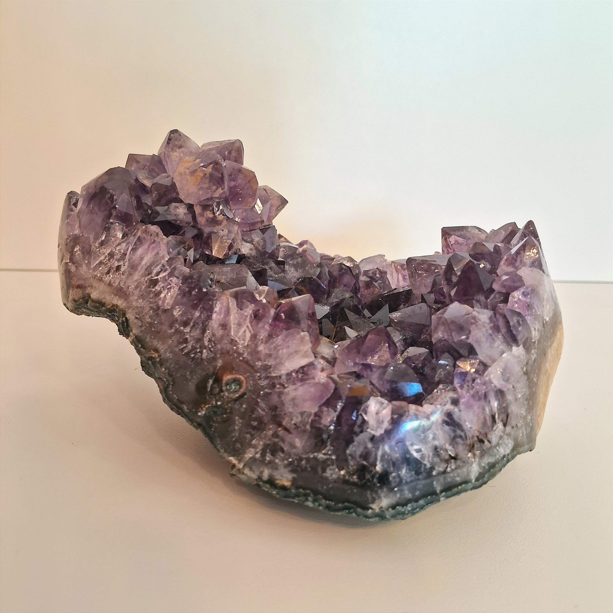 Ametista- é um cristal extremamente poderoso e protetor. É o cristal da elevação espiritual e é excelente para favorecer a meditação. Sendo um calmante natural, essa pedra preciosa facilita a tomada de decisões e promove o centramento emocional. Do ponto de vista mental, ela ajuda a nos sentirmos menos dispersos, mais focados e no controle das nossas faculdades mentais, favorecendo a assimilação de novas ideias. Dissipa raiva, medo, ódio e ansiedade.