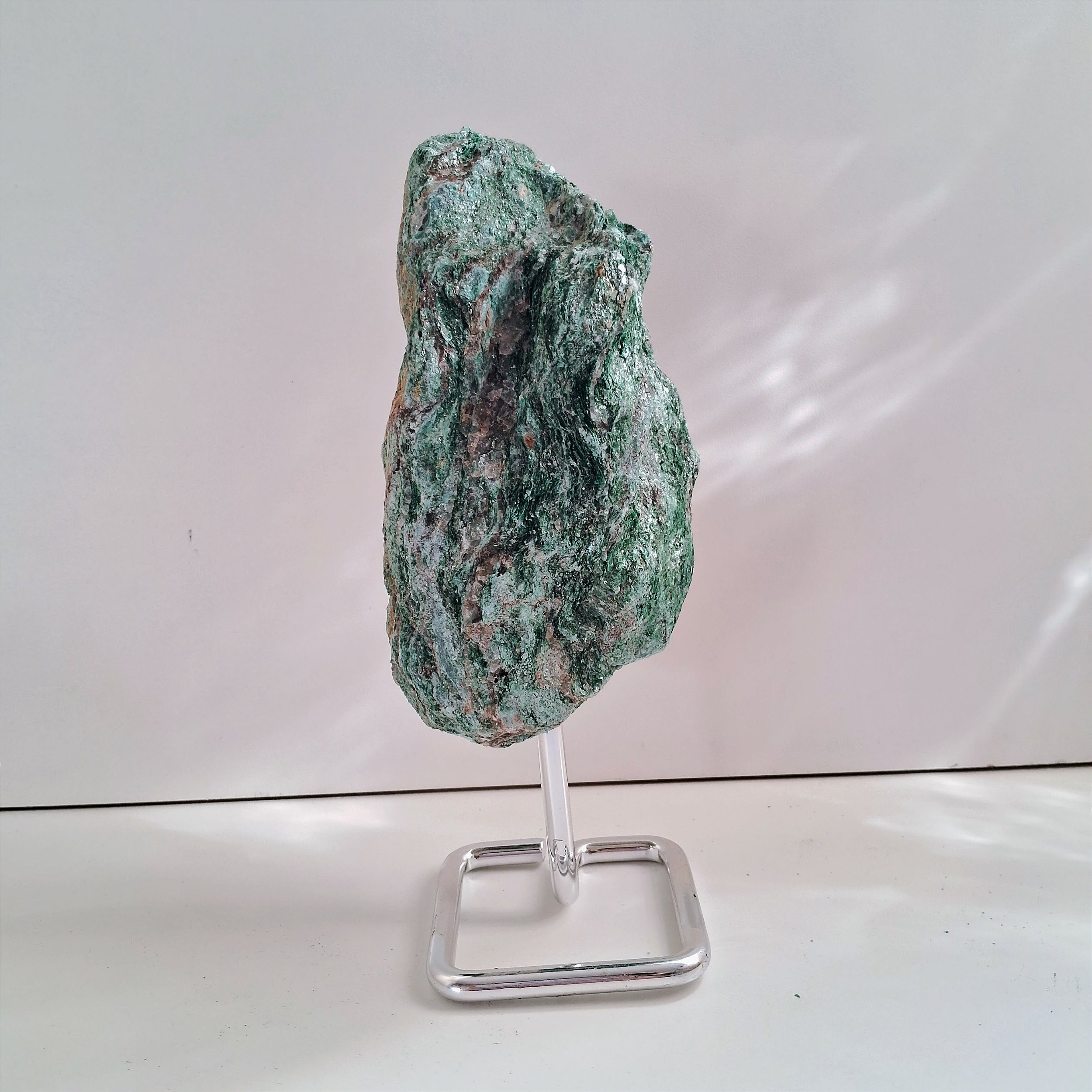 Fuchsita - Esse cristal amplia a energia dos cristais e facilita a sua transferência. Ele movimenta a energia circular para o ponto mais inferior, reestabelecendo o equilíbrio. Também elemina bloqueios causados pelo excesso de energia e faz com que ela seja canalizada para atividades positivas. Esse cristal auxilia em lesões por esforço repetitivo e também realinha a coluna vertebral e aumenta a flexibilidade do sistema muscoesquelético.