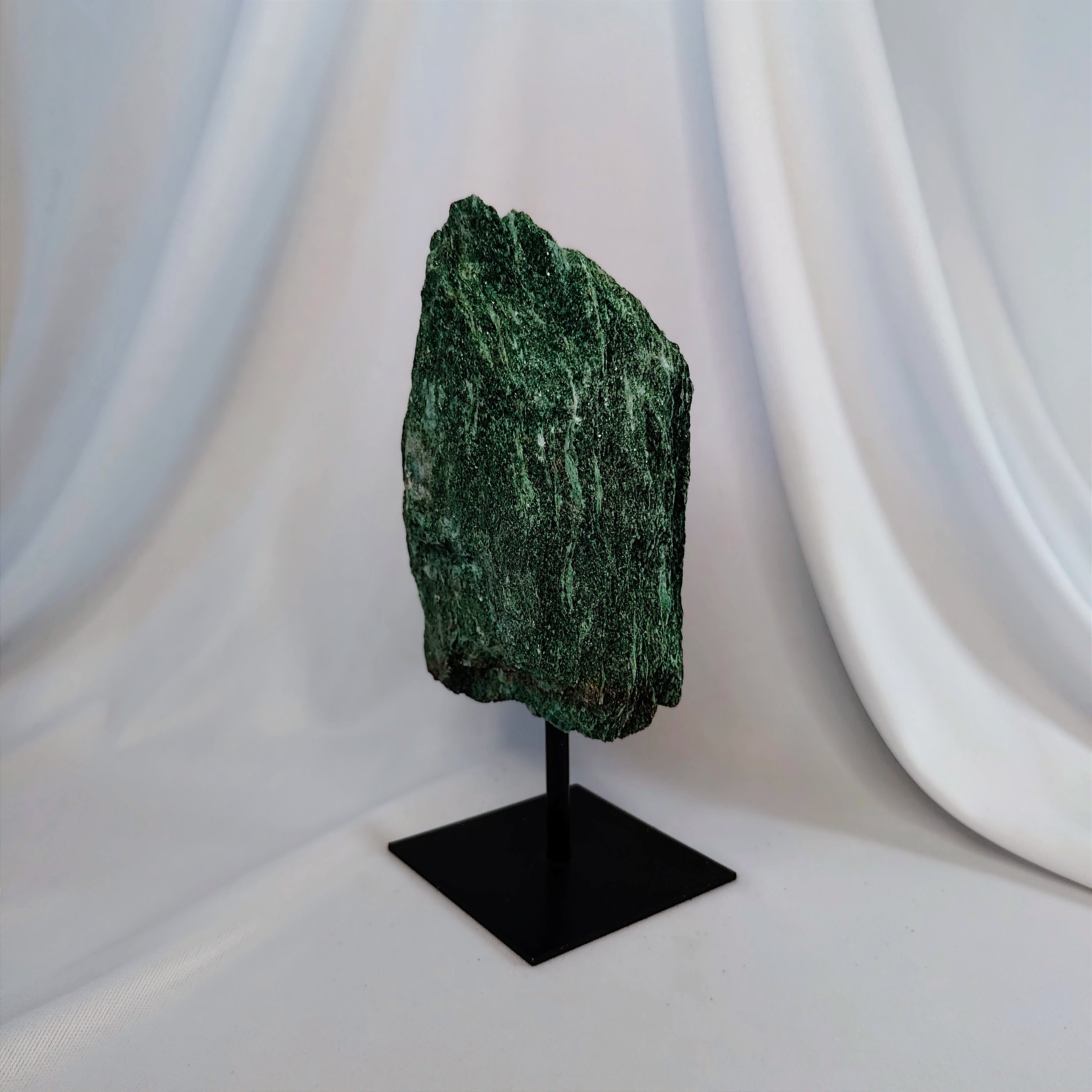 Fuchsita - Esse cristal amplia a energia dos cristais e facilita a sua transferência. Ele movimenta a energia circular para o ponto mais inferior, reestabelecendo o equilíbrio. Também elemina bloqueios causados pelo excesso de energia e faz com que ela seja canalizada para atividades positivas. Esse cristal auxilia em lesões por esforço repetitivo e também realinha a coluna vertebral e aumenta a flexibilidade do sistema muscoesquelético.