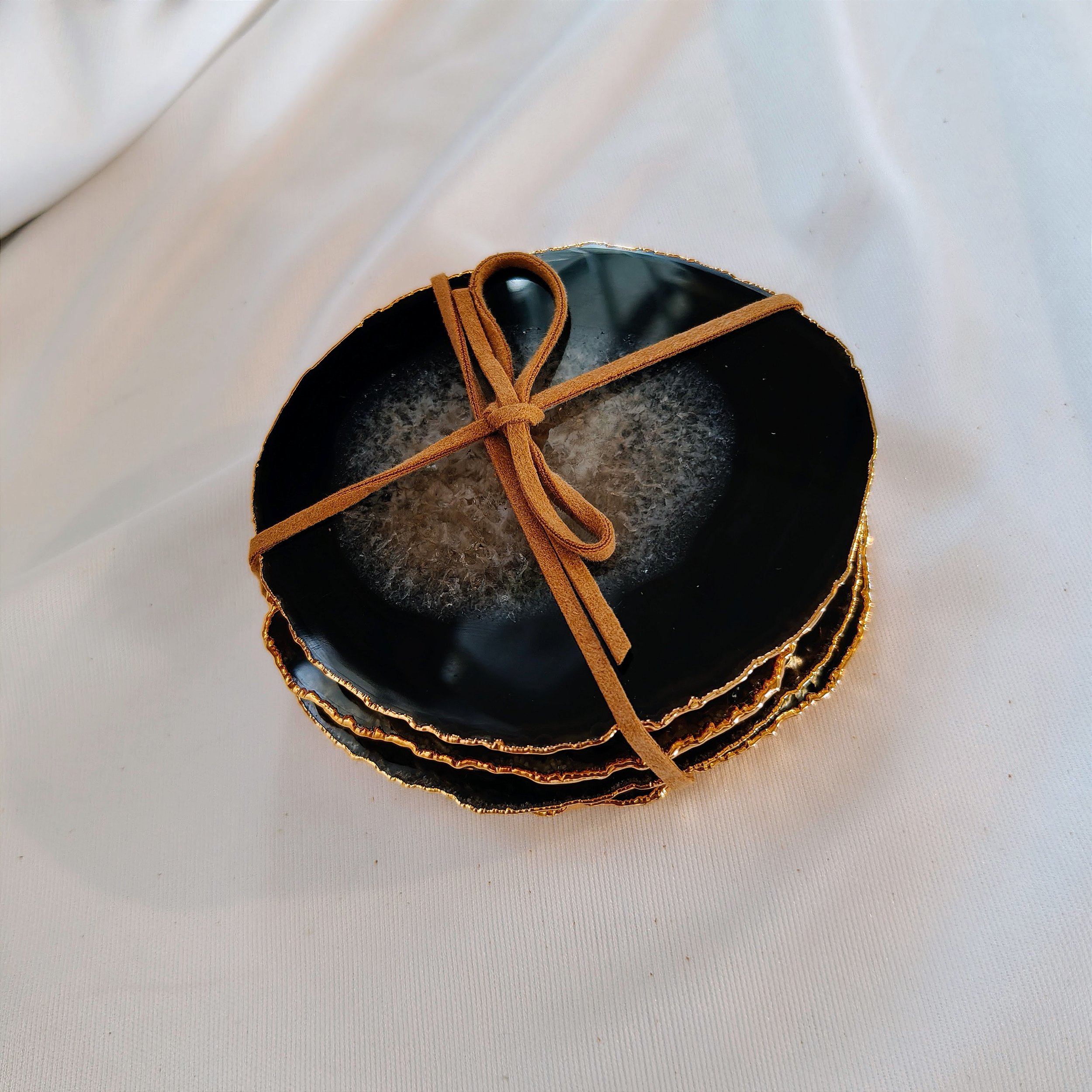 obs: Por se tratar de um produto feito com pedra natural e acabamento artesanal com borda dourada, podem ocorrer variações de tonalidade, veios, formato e tamanho entre as peças, tornando cada conjunto único.