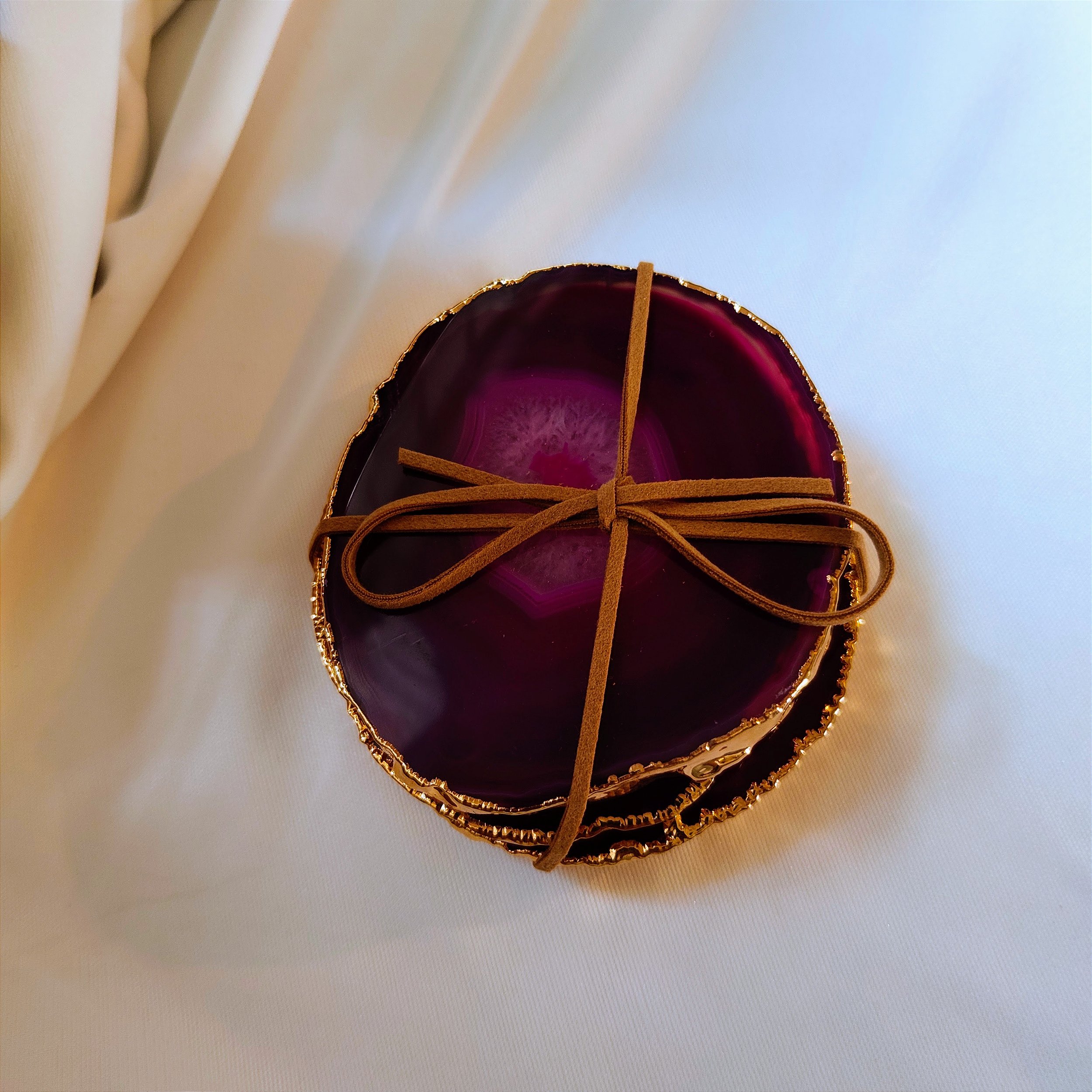 O Kit 4 Porta Copos Ágata – Borda Dourada é um conjunto de peças em ágata com acabamento em borda dourada, pensado para organizar copos ou pequenos objetos com estilo e sofisticação. A ágata é uma pedra associada ao equilíbrio mental, físico e intelectual, contribuindo para maior percepção, concentração e capacidade analítica, além de auxiliar na liberação de emoções reprimidas e estimular coragem para recomeçar. O acabamento em borda dourada valoriza a peça, conferindo um toque refinado à decoração de mesas de centro, aparadores e espaços de convivência.