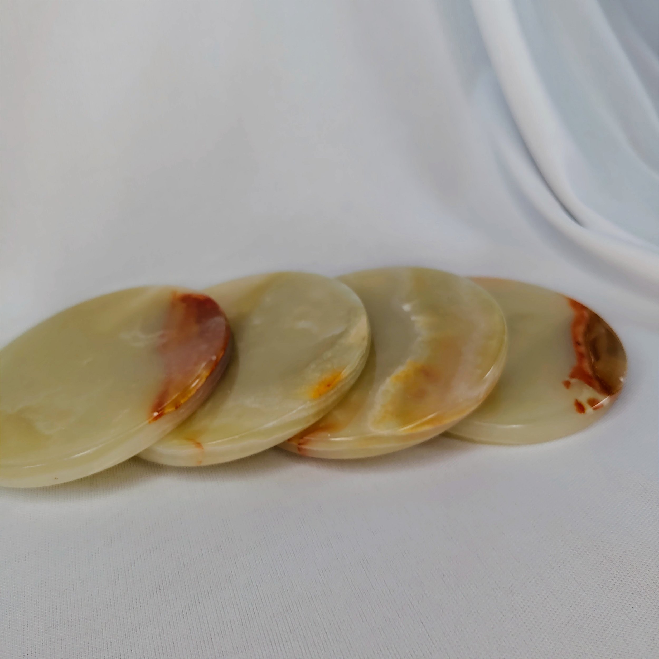 O Kit Porta Copos Ônix Verde – 4 unidades é um conjunto de porta copos em ônix verde natural, ideal para apoiar copos ou pequenos objetos e proteger superfícies com estilo e funcionalidade. O ônix é uma pedra conhecida por conferir poder pessoal, vigor, constância e resistência, além de propiciar apoio em circunstâncias difíceis ou confusas e em períodos de estresse mental ou físico, auxiliando no alívio de medos, preocupações e na tomada de decisões. Este conjunto une a beleza singular da pedra natural com praticidade, agregando um toque sofisticado à decoração de mesas de centro, aparadores ou bancadas e valorizando seus momentos de convívio.