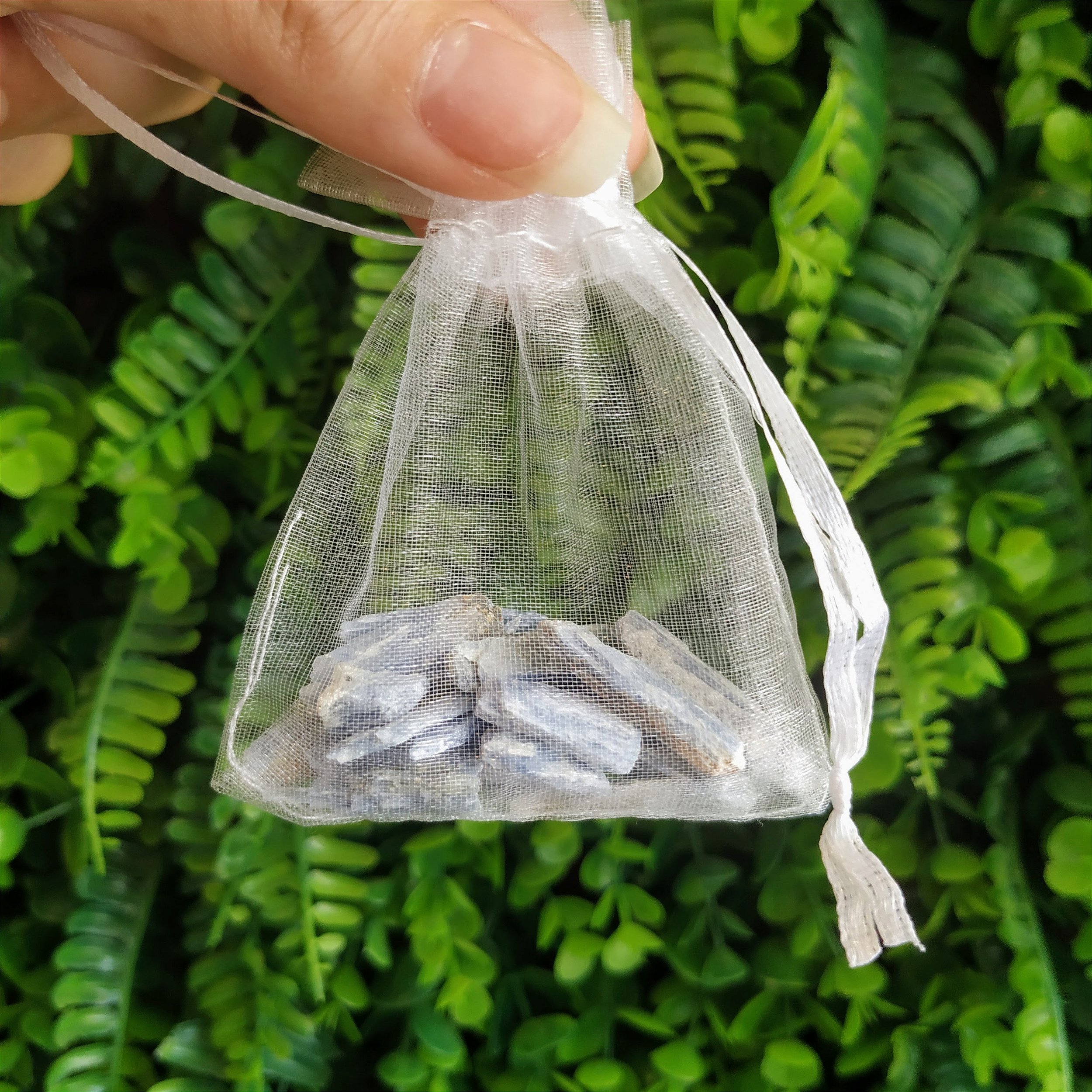 Cianita Azul – é um excelente cristal para sintonização e meditação. Estimula a intuição. É tranquilizante, fortalece a voz, a laringe e a garganta. Útil para quem necessita falar em público. Estimula a expressão da verdade. Dissipa a confusão e os bloqueios, a ilusão, a raiva, a frustração e o estresse. Como ela não absorve negatividade, nunca requer limpeza.