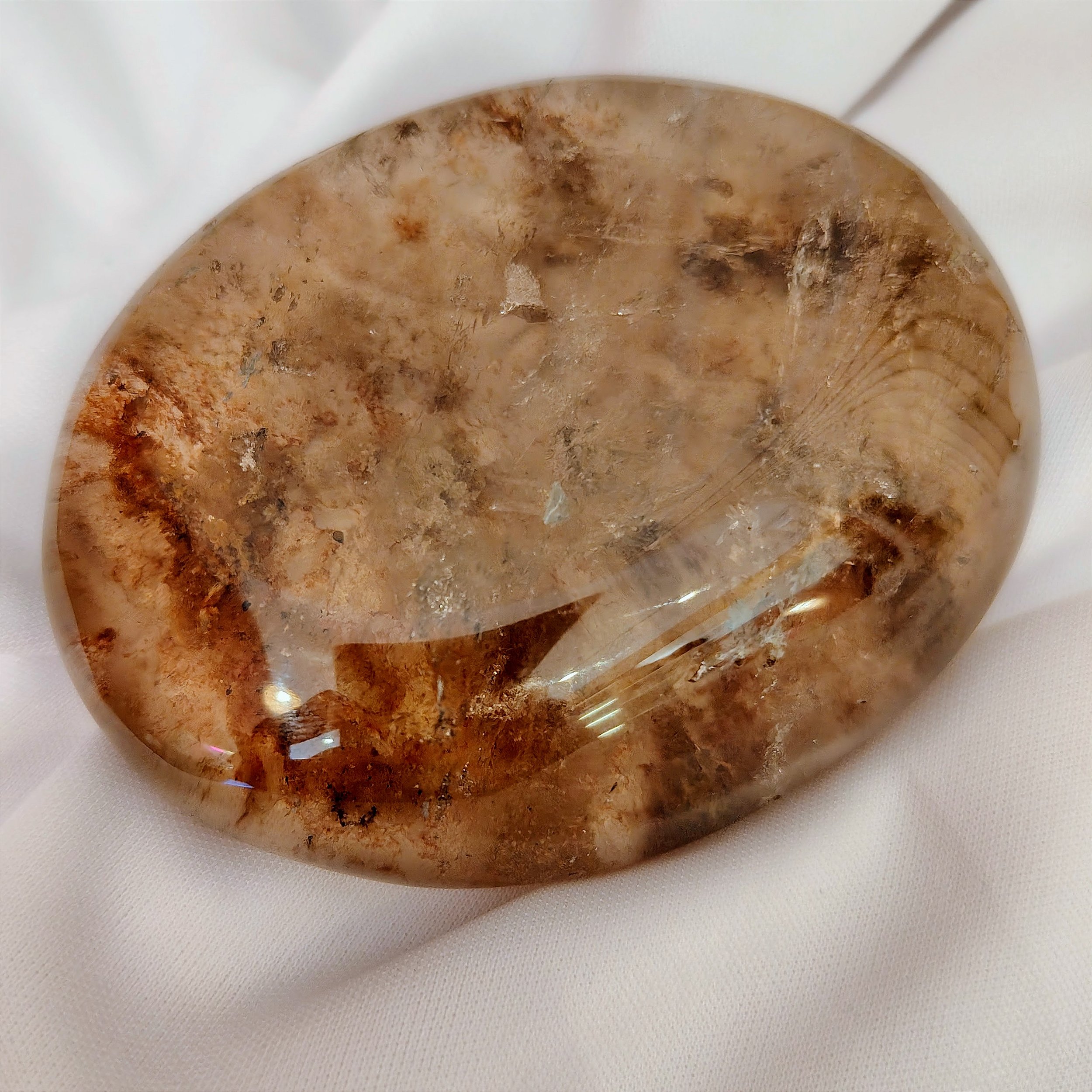 A lente de Lodolita é um tipo especial de cristal usado muito em práticas espirituais e meditativas. Ela é feita de Lodolita, que na verdade é um Quartzo com inclusões minerais que parecem pequenas paisagens internas (às vezes lembrando montanhas, florestas ou nuvens).