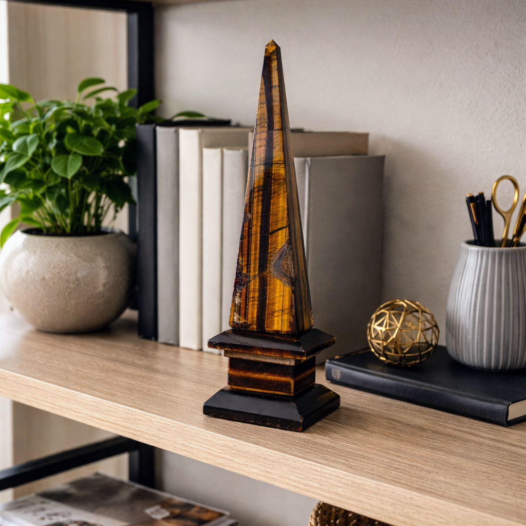 Olho de Tigre – esse cristal auxilia no alcance de metas. Ajuda a distinguir o que queremos do que realmente precisamos. Útil na resolução de conflitos, especialmente os causados pelo orgulho e pela teimosia. Auxilia nos problemas de desvalorização pessoal, amor próprio, criticismo em relação a nós mesmos e criatividade bloqueada. Ajuda a superar vícios e a melhorar a visão noturna.