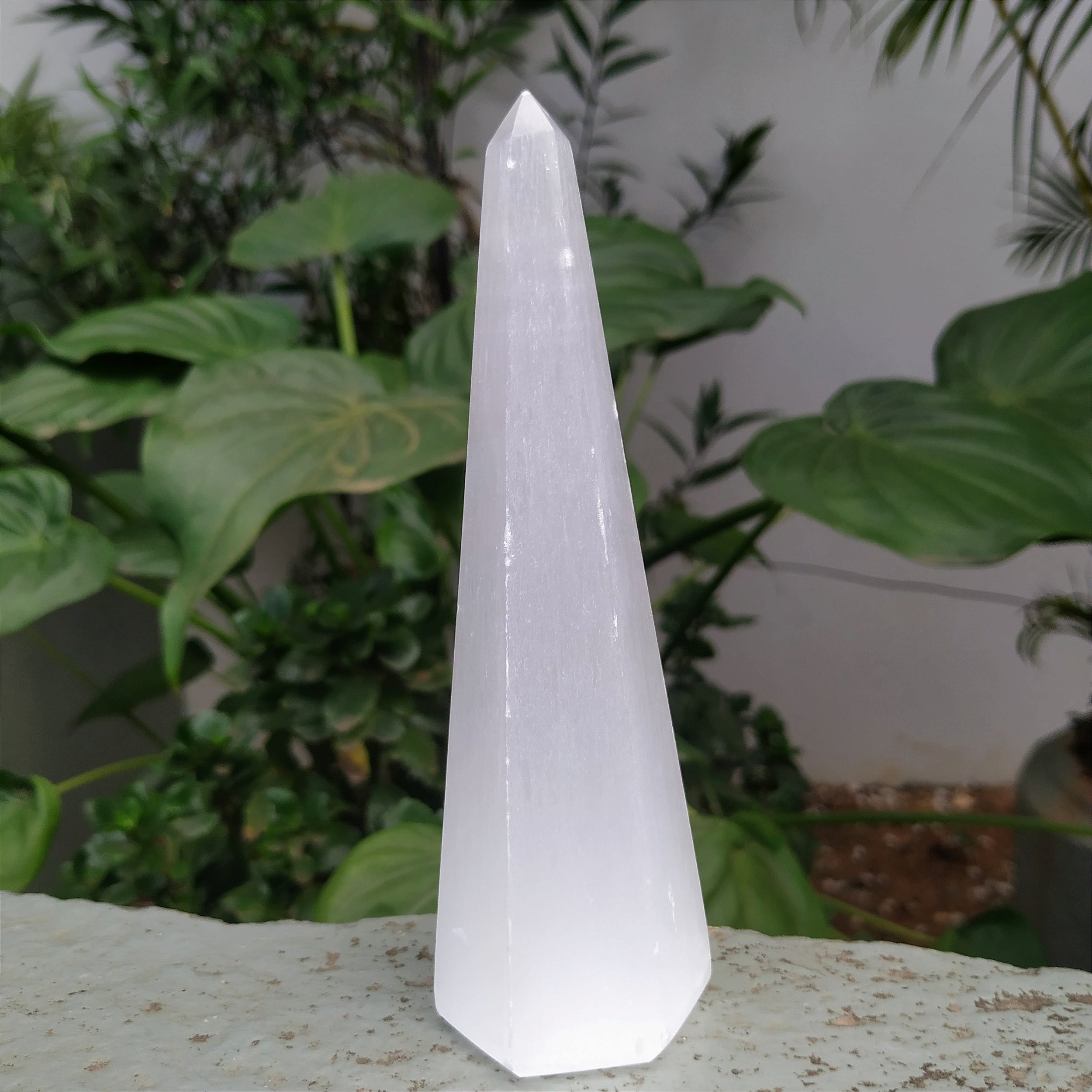 Selenita Branca – é um cristal sereno que instila a paz profunda. Forma uma grade protetora em torno da casa. Excelente cristal também, para mulheres que estão amamentando ou que têm filhos pequenos. Essa pedra preciosa aumenta a lucidez e melhora a flexibilidade. Sua vibração dissipa a confusão mental e nos ajuda a ter uma visão mais profunda da situação, trazendo um entendimento consciente do que ocorre no subconsciente. É uma maneira rápida de purificação e limpar seu campo energético. Ele fortalecerá e aumentará a energia de qualquer outro cristal com o qual entrar em contato.