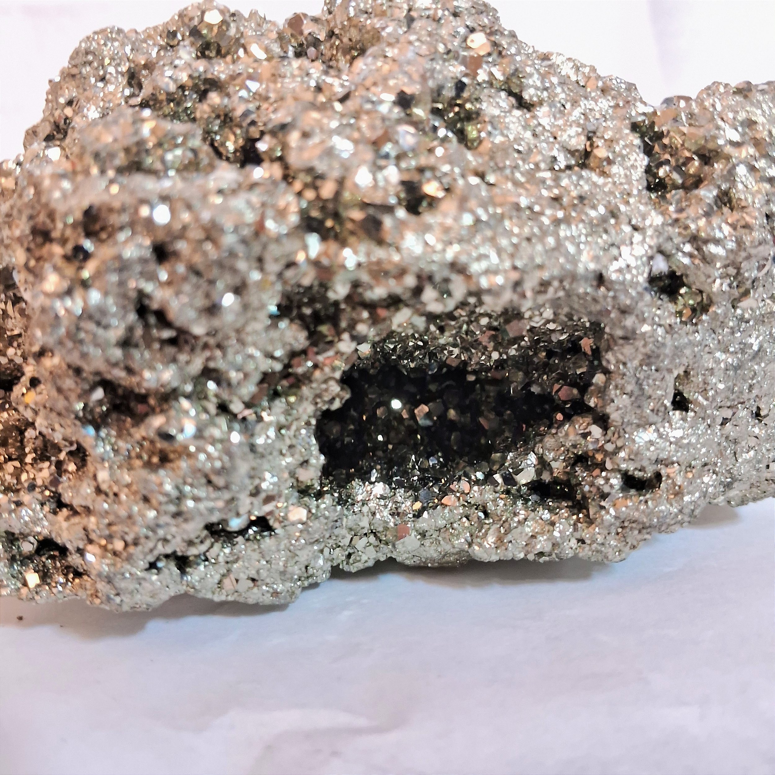 Pirita - É o cristal da prosperidade e abundância. Acelera a atividade mental, estimula a memória e fortalece o sistema circulatório. É um escudo energético excelente, é um cristal muito positivo e bloqueia energias negativas e poluentes em todos os níveis. Combate a inércia e os sentimentos de inadequação. Combate a melancolia, alivia a ansiedade e a frustração e fortalece a confiança em si mesmo.