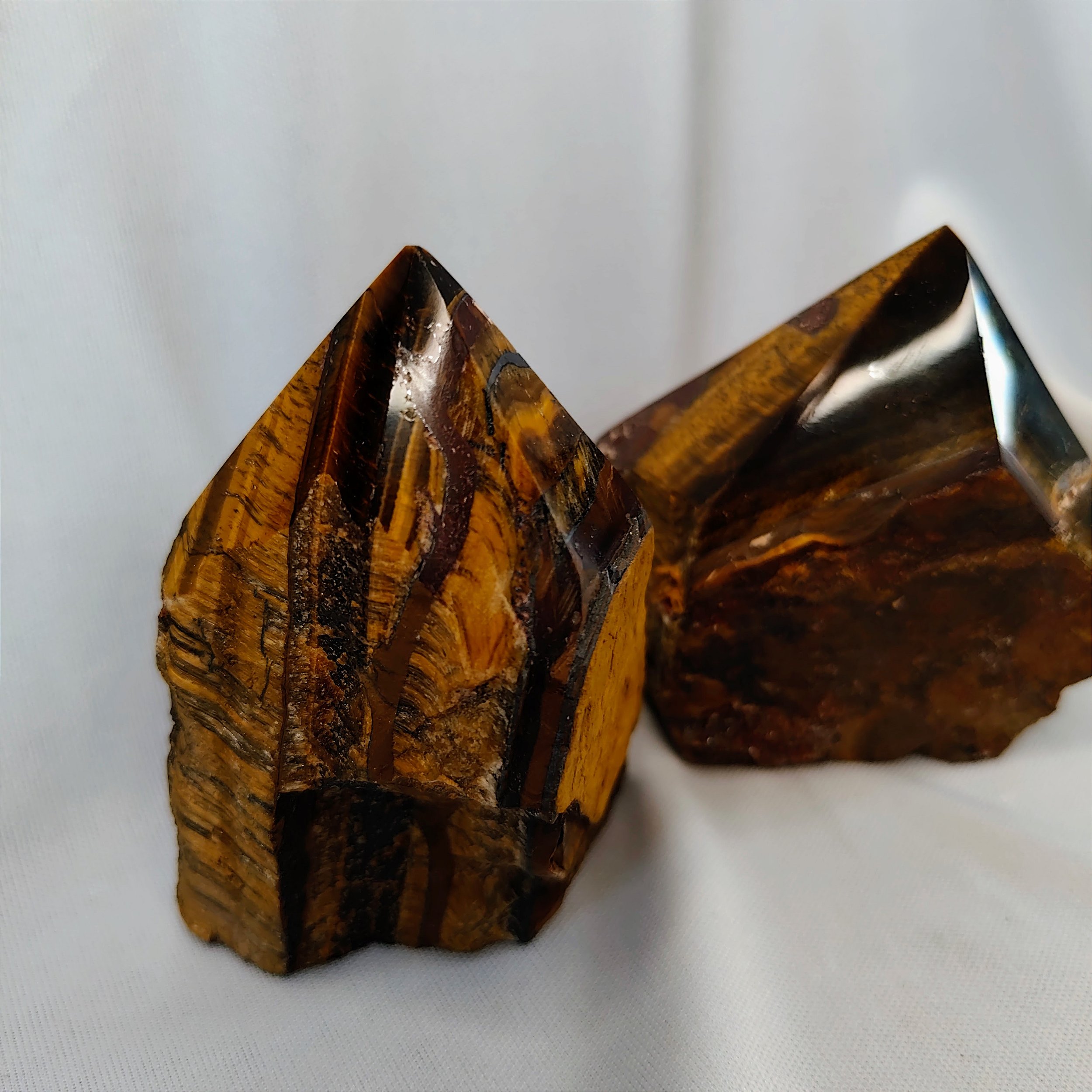 Olho de Tigre – esse cristal auxilia no alcance de metas. Ajuda a distinguir o que queremos do que realmente precisamos. Útil na resolução de conflitos, especialmente os causados pelo orgulho e pela teimosia. Auxilia nos problemas de desvalorização pessoal, amor próprio, criticismo em relação a nós mesmos e criatividade bloqueada. Ajuda a superar vícios e a melhorar a visão noturna.
