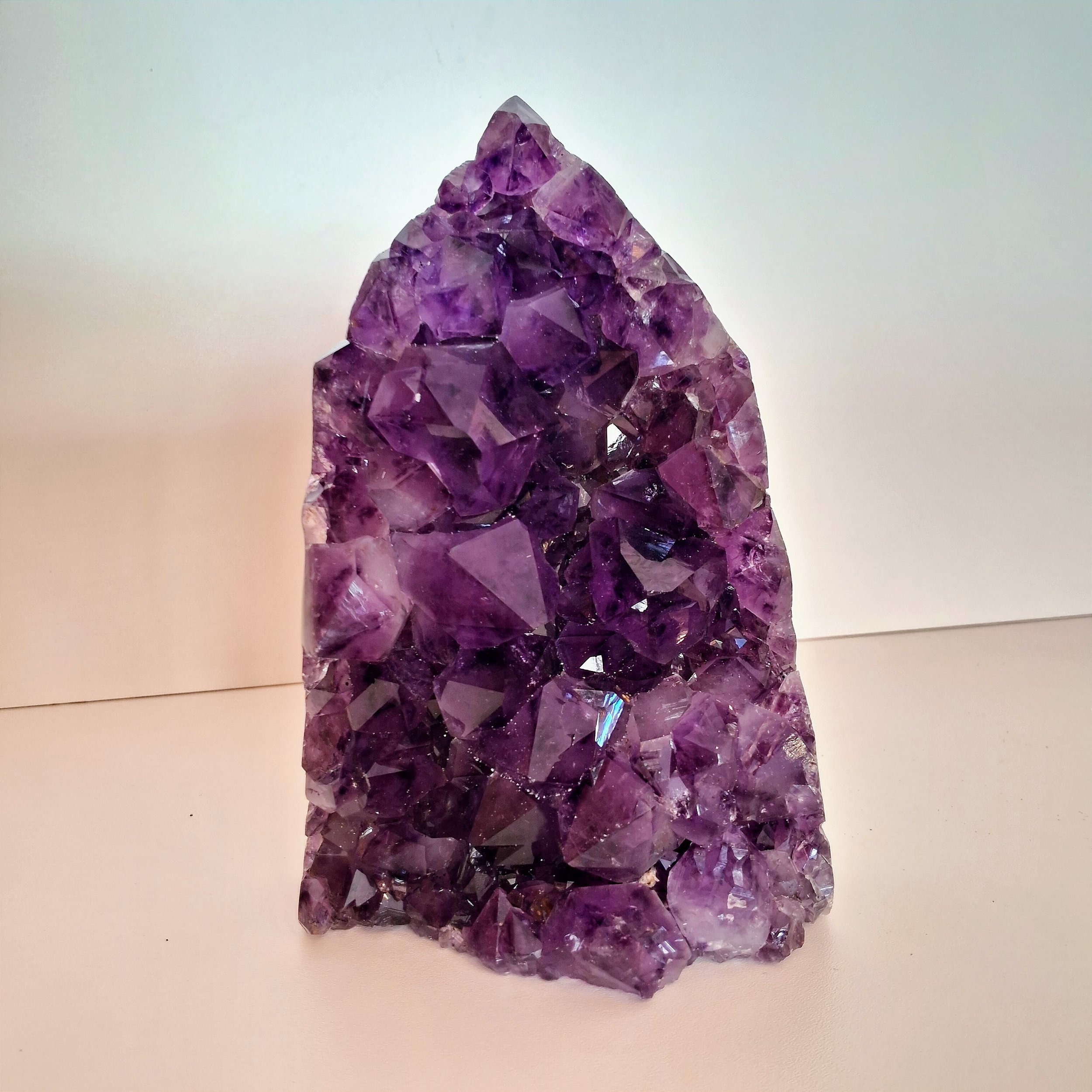 Ametista- é um cristal extremamente poderoso e protetor. É o cristal da elevação espiritual e é excelente para favorecer a meditação. Sendo um calmante natural, essa pedra preciosa facilita a tomada de decisões e promove o centramento emocional. Do ponto de vista mental, ela ajuda a nos sentirmos menos dispersos, mais focados e no controle das nossas faculdades mentais, favorecendo a assimilação de novas ideias. Dissipa raiva, medo, ódio e ansiedade.