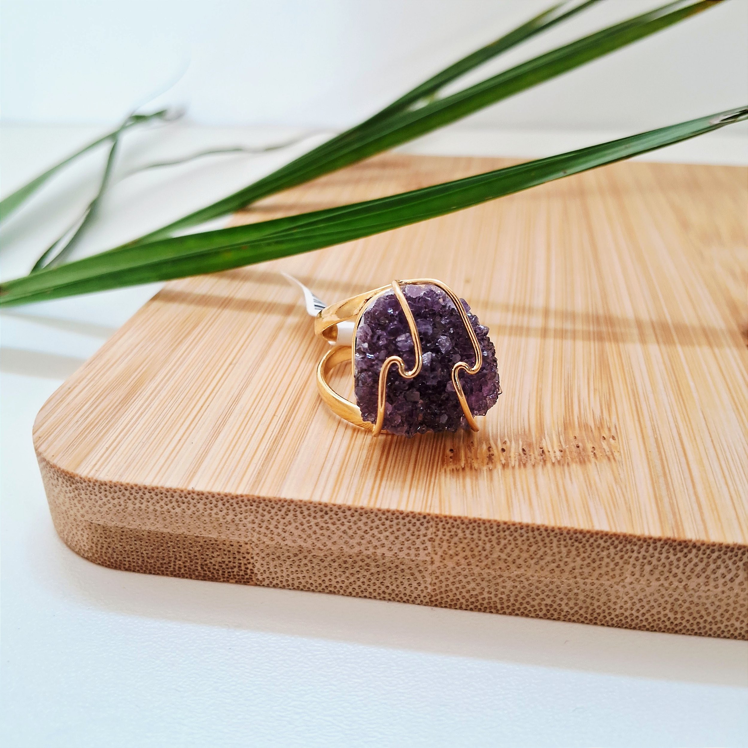 Anel Regulável Drusa Ametista - Folheado a Ouro
