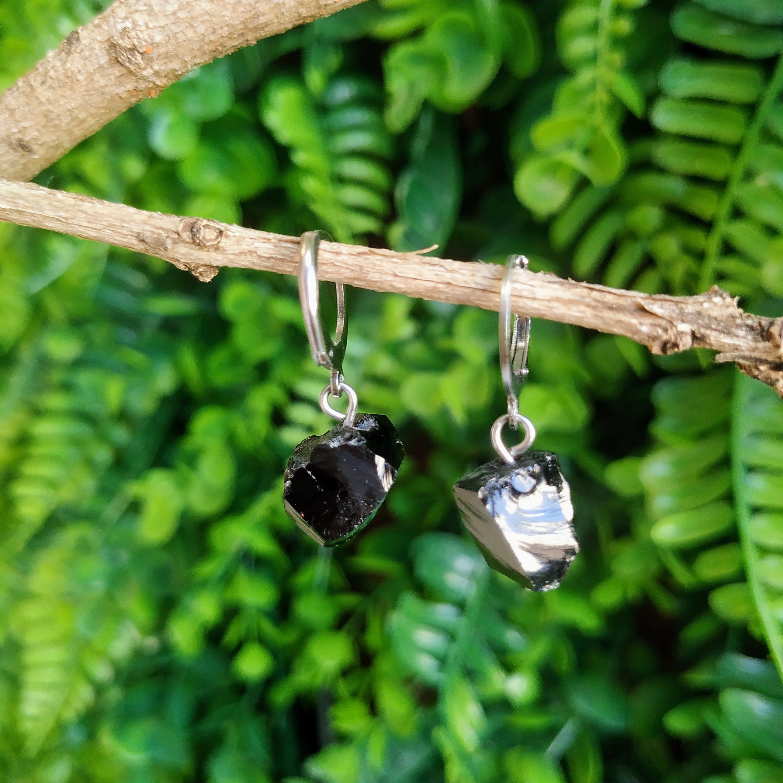 Brinco Argola Obsidiana Negra Bruta
